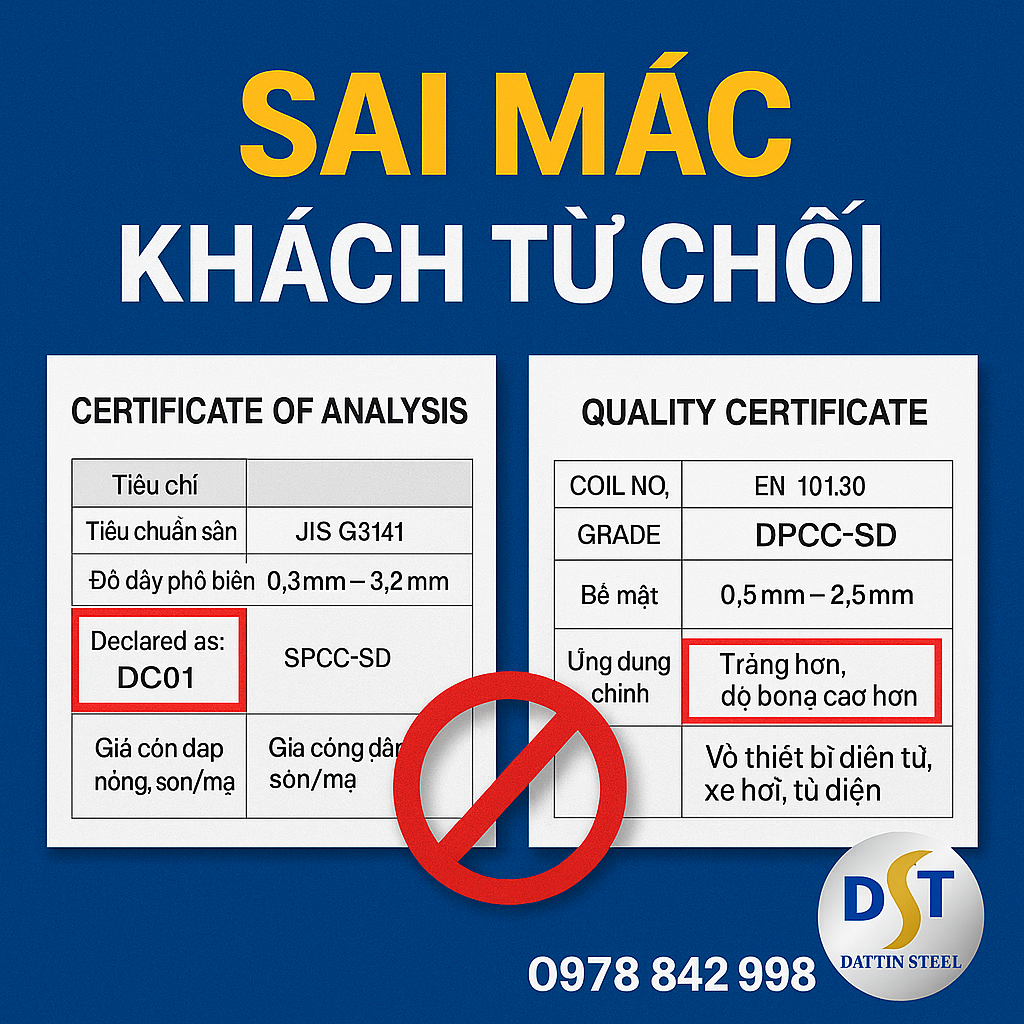 Nhiều doanh nghiệp nhập hàng DC01 nhưng CQ lại ghi SPCC-SD, hoặc ngược lại → không đạt yêu cầu của nhà máy FDI (đặc biệt Nhật, Hàn, EU).