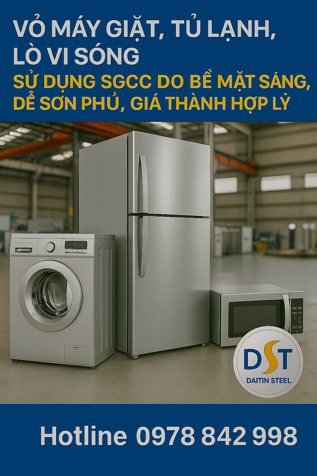 Vỏ máy giặt, tủ lạnh, lò vi sóng sử dụng SGCC do bề mặt sáng, dễ sơn phủ, giá thành hợp lý
