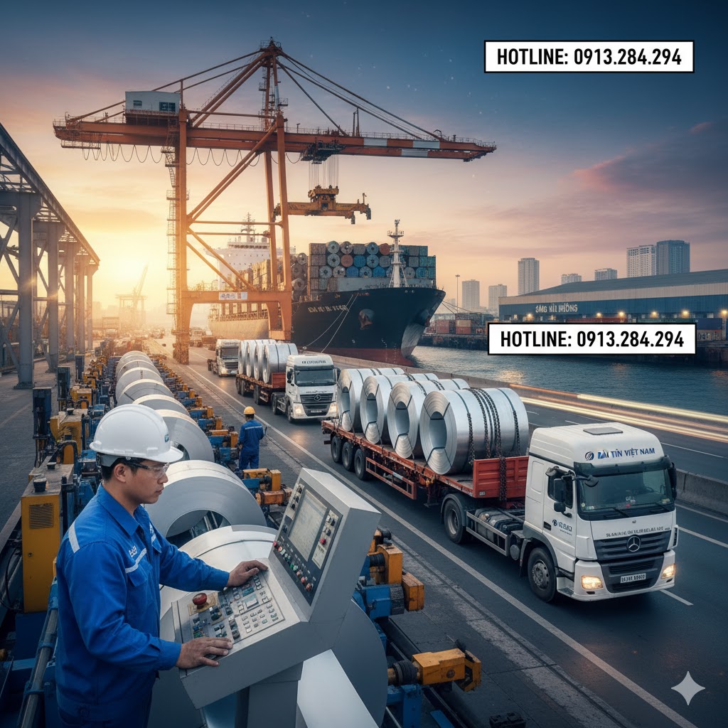 Khổ cuộn/tấm và dịch vụ gia công: Lựa chọn khổ cuộn phù hợp (914 / 1000 / 1219 / 1250 mm) và dịch vụ xả băng (slit), cắt tấm (CTL) chính xác theo bản vẽ sẽ giúp bạn tối ưu hóa vật tư, giảm phế liệu (mục tiêu <1%) và rút ngắn thời gian sản xuất.