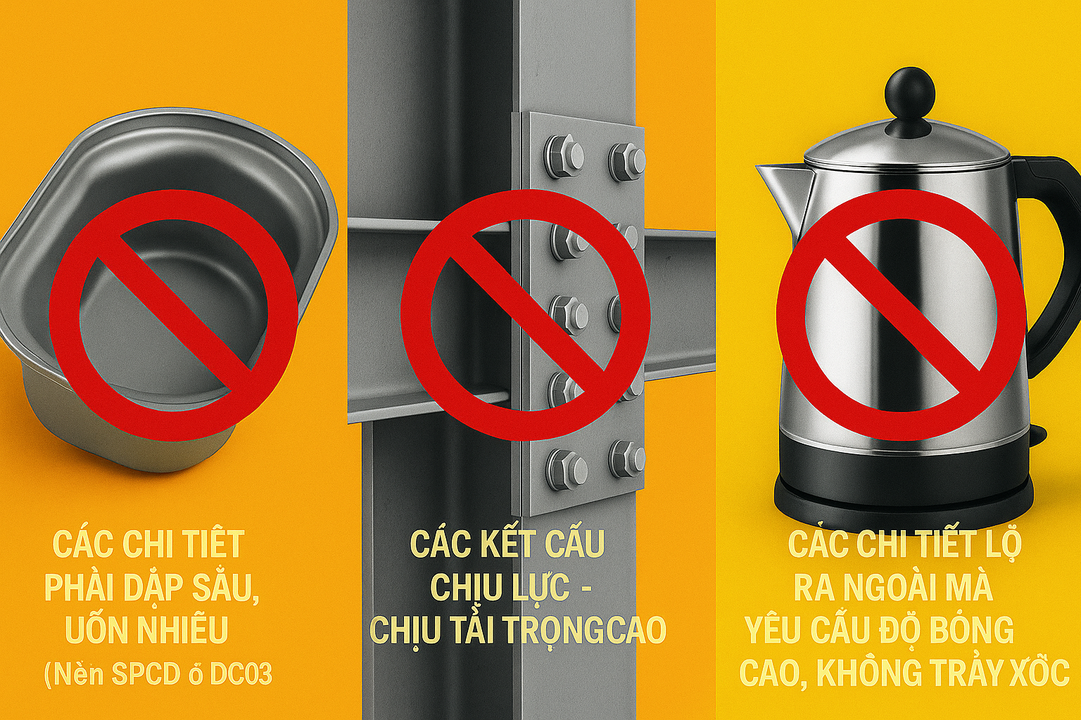 Các chi tiết phải dập sâu, uốn nhiều (nên dùng SPCD hoặc DC03)
